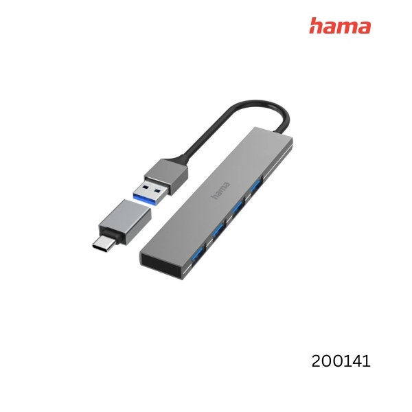 Hama USB hub 4 ports USB 3.2 Gen1 5 Gbit/s ultra slim incl. USB-C adapter | 200141